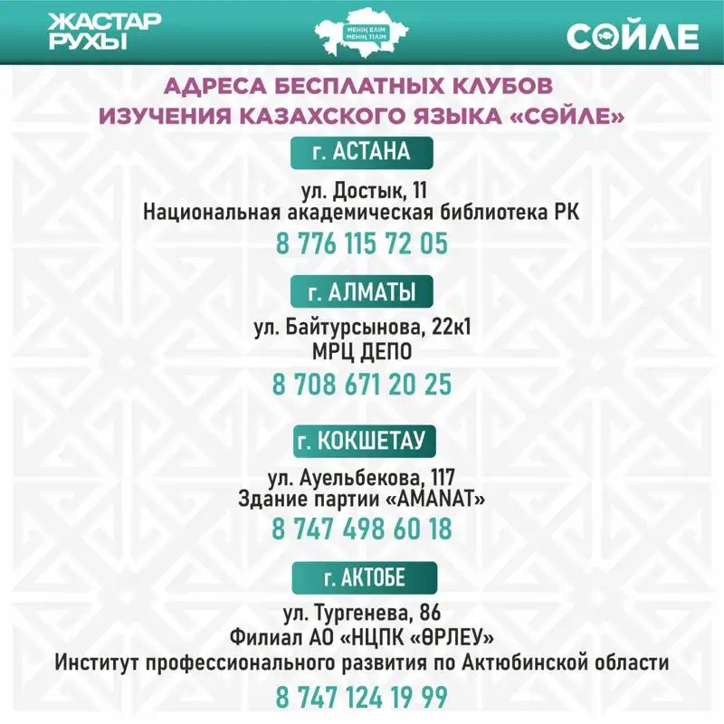 - Я бы не назвал это курсами, это в первую очередь клубы. Чем они отличаются от курсов? В клубе помимо того, что люди занимаются изучением непосредственно языка, они еще и узнают казахскую культуру. Например, мы завели хорошие традицией ходить периодически в театры. Во всех городах кроме Конаева, где театров пока нет. Первым еще в январе в самом начале нас поддержал казахский драматический театр имени Ж. Аймауытова в Павлодаре. Это сотрудничество продолжается. И в других городах нас поддерживают учреждения культуры, ходят наши участники в музеи.