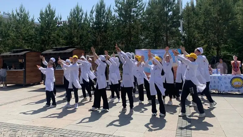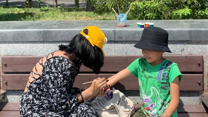 "Сегодня с 10 утра начались в дошкольных организациях флешмобы с воздушными шарами, мыльными пузырями. Также параллельно на спортивных площадках города дети играли в футбол с привлечением наших знаменитых футболистов. И в 12 часов во всех парках города мы проводим массовые мероприятия. С районными акиматами совместно провели подготовку. Здесь участвуют и школы города, и колледжи, и наши дошкольные организации, и организации дополнительного образования. В столичном парке у нас шоу мыльных пузырей, мастер-классы, концертная программа с привлечением аниматоров, театралов. Нам помогли районные акиматы, предоставили площадку, помощь. Здесь у нас выставка картин, раздают выпечку".Гульфара Сарамбетова