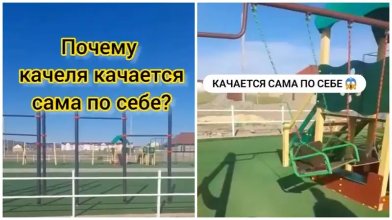 "Жителей Зайсана (ВКО) напугали качели, которые качаются сами по себе. Местные жители утверждают, что так уже происходит несколько дней... Позвали имама, чтобы он прочел молитву, но от нее качеля еще больше стала раскачиваться", – говорится в описании ролика.