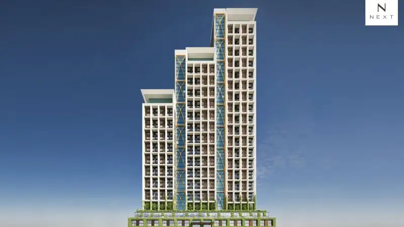 В Next Address задействован принцип модульной архитектуры – это функциональное, экологичное и максимально адаптированное современным требованиям комплекс. Все лифты, блоки кондиционеров, технические помещения и комнаты для персонала расположены в отдельных башнях между жилыми блоками, чтобы сохранить премиальную дизайн-концепцию и комфорт жильцов и гостей комплекса. Благодаря полному панорамному остеклению в здание будет попадать максимум солнечного света, а из лифтов и апартаментов – открываться живописные виды на город и море.