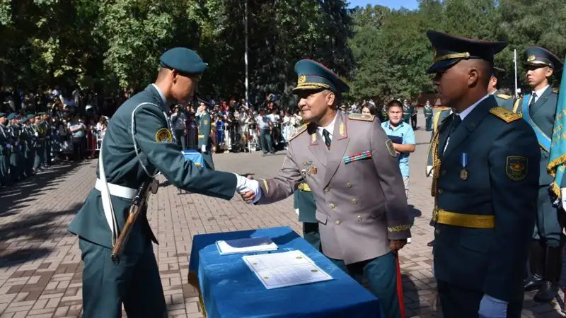 Со знаменательным событием курсантов поздравил начальник главного штаба – первый заместитель главнокомандующего Сухопутными войсками Вооруженных сил РК генерал-майор Каныш Абубакиров.