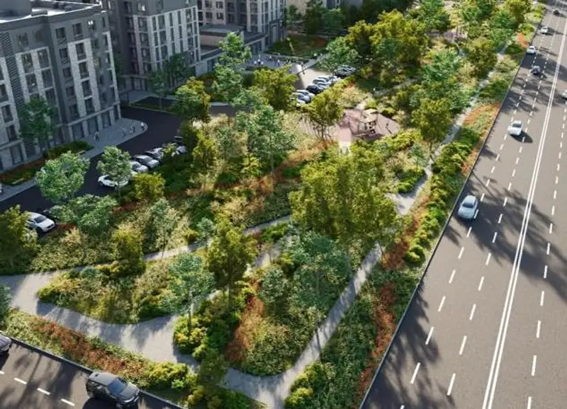 Для городского пространства компания выделила из своей частной территории 3,5 гектара земли под строительство школы, внутриквартальных дорог (согласно нового генерального плана), парковой зоны и променада.