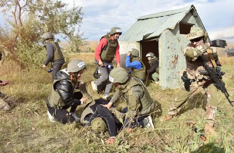 За три насыщенных событиями дня журналисты, операторы и фотокорреспонденты под наблюдением опытных военных инструкторов прошли теоретическую и практическую подготовку к работе в потенциальных зонах вооруженных конфликтов.