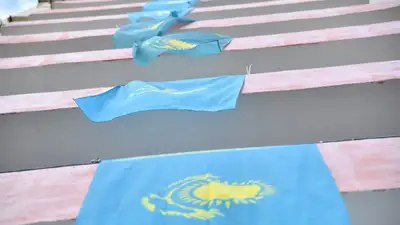 Балконы жилых домов в Атырау украсили Государственным флагом