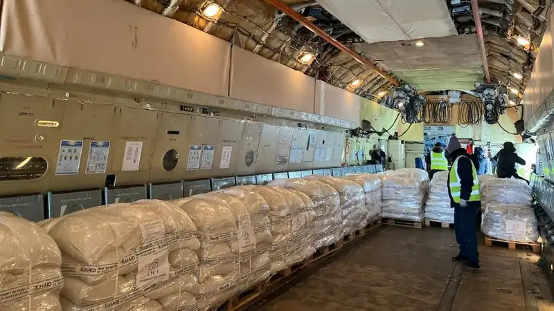 Гуманитарный груз в виде продуктов питания и постельных принадлежностей из государственного материального резерва, а также лекарственные средства и медицинские изделия ТОО "СК-Фармация" направлены грузовым самолетом.