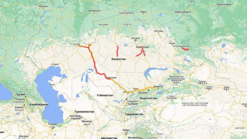 - Самара – Шымкент, км 1802-1240, уч. гр. Актюбинской области – г. Кызылорда – 562 км.