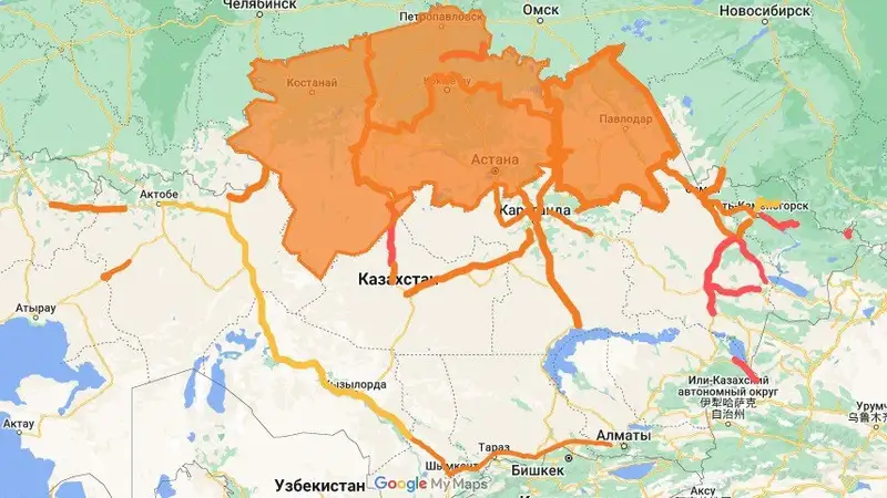 По всей сети автодорог республиканского значения ограничение действует на 13 261 км. Скопление транспорта на участке – 2489 ед. (2452 грузовых, 35 легковых, 2 общественных).