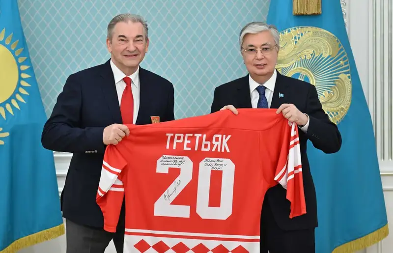 Легендарный хоккеист Третьяк подарил Токаеву именную футболку