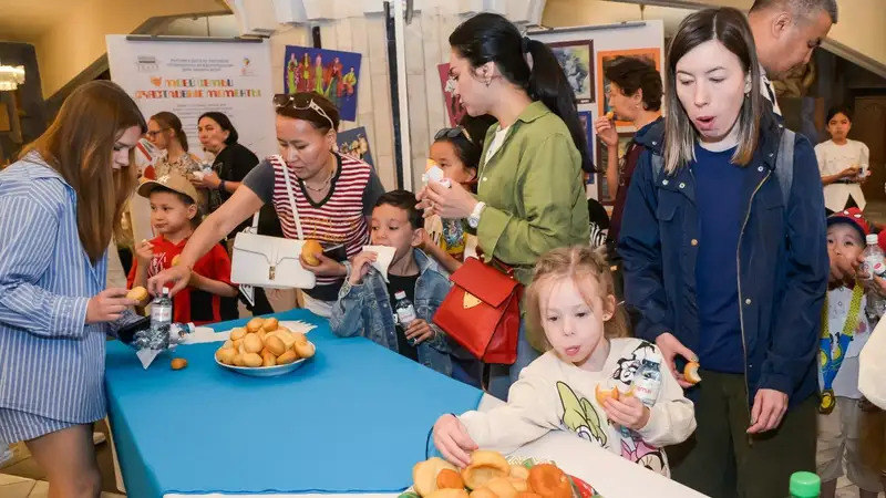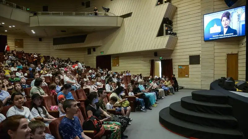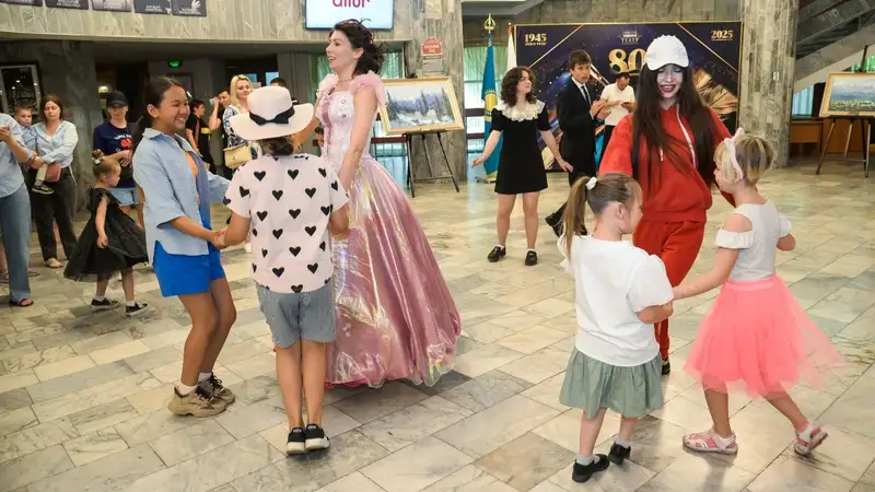Юные зрители посетили выставку, размещенную в фойе театра, "Моей семьи счастливые моменты", на которой были представлены работы воспитанников художественной школы "Мастерская Крупеня". Затем приняли участие в интерактивном концерте "По страницам любимых мультфильмов", в котором артисты театра и воспитанники детской театральной студии "Sats ComUnity" исполнили песни из любимых фильмов и мультфильмов. Позже состоялся показ благотворительного спектакля "Алдар-Косе" по мотивам народных казахских сказок, на который были приглашены воспитанники детских домов, дети с ограниченными возможностями, а также ребята из малоимущих и многодетных семей. В конце спектакля артисты звездной труппы совершили обряд шашу, угостив юных зрителей конфетами.