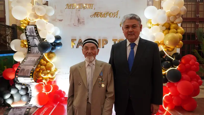 В день рождения юбиляру была организована ретро-лента с фотографиями и импровизирован уголок рабочего кабинета в стиле 1960-х годов, где глава региона Ермек Кошербаев поздравил Курмата Рахимовича и с теплотой вспомнил, как они с ветеранами отмечали День победы в Левобережном парке за солдатской кашей и историями о военном времени.