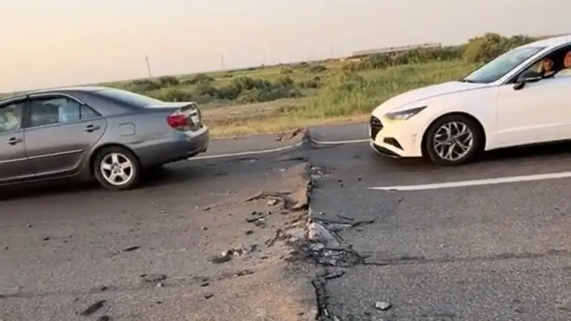 "27 июня 2024 года в Туркестанской области из-за аномальной жары (+45 - +50 °C) примерно в 19:30 на автомобильной дороге республиканского значения М-32 "Граница РФ (на Самару) – Шымкент" 2155-й км, в направлении Туркестана, на цементобетонном покрытии произошло коробление (поднятие) плит", – сообщили в "КазАвтоЖоле".