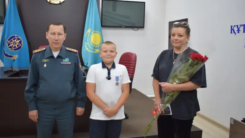 По приказу министра по ЧС РК 10-летнему герою была вручена медаль "Өртте көрсеткен қайсарлығы үшін".
