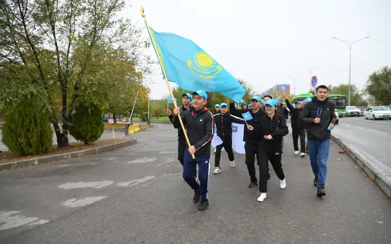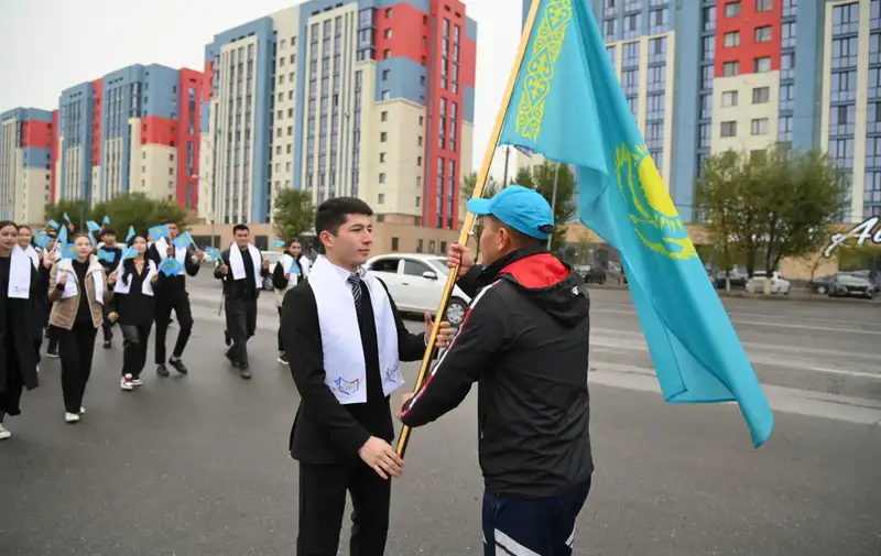 Шествие молодых, которые несли развевавшийся голубой флаг страны, началось у монумента "550 лет Казахскому ханству" и продолжилось до Площади Независимости. В параде приняли участие по 33 молодых человека из каждого учебного заведения.