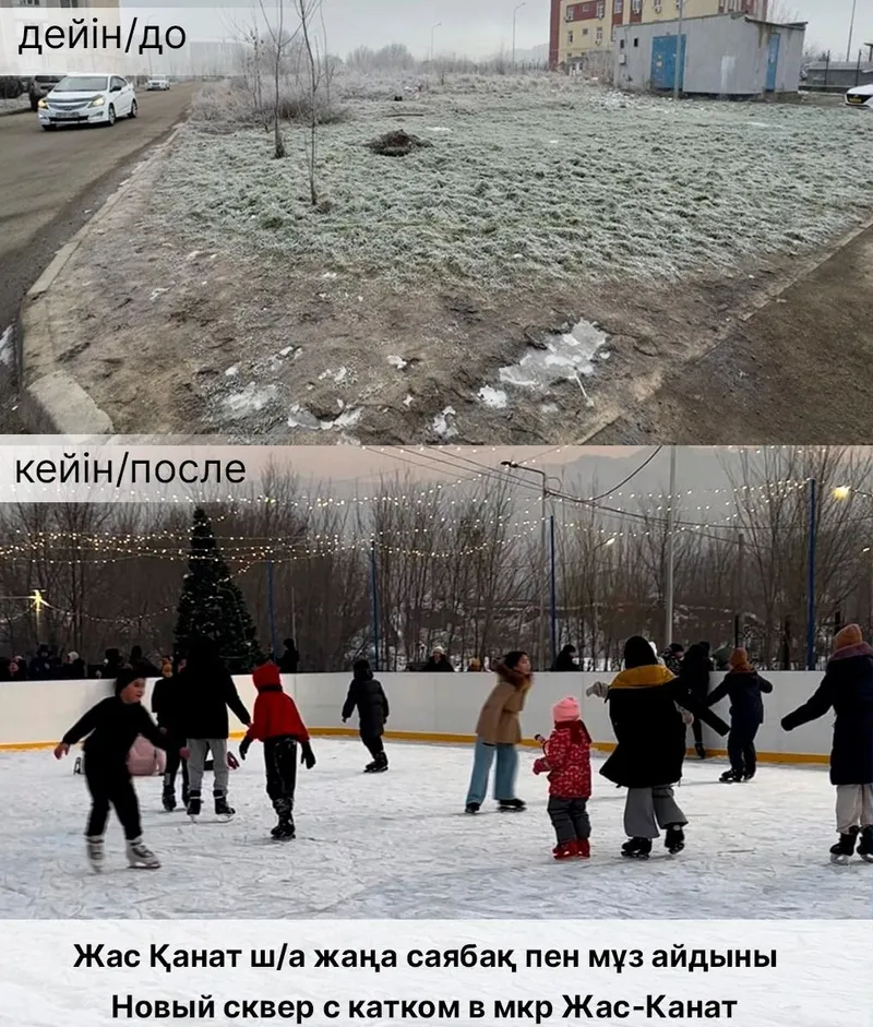 На заброшенной территории в микрорайоне Жас-Канат Турксибского района Алматы построен современный сквер с ледовым катком. Об этом стало известно Zakon.kz 15 января 2025 года из сообщения городского акимата.