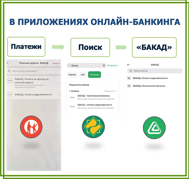 - Постоплата – оплата в течение 7 календарных дней после использования дороги. Эти виды оплат осуществляются через раздел "БАКАД. Оплата за проезд по платной дороге" в указанных выше приложениях.