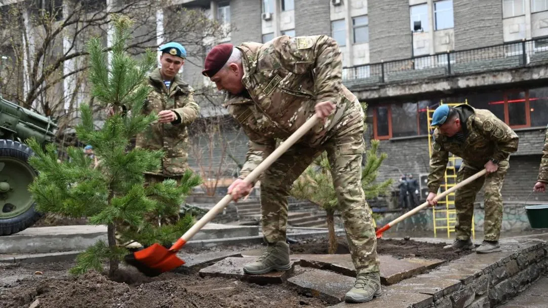 Военнослужащие посадили деревья в Алматы к 80-летию Победы в Великой Отечественной войне