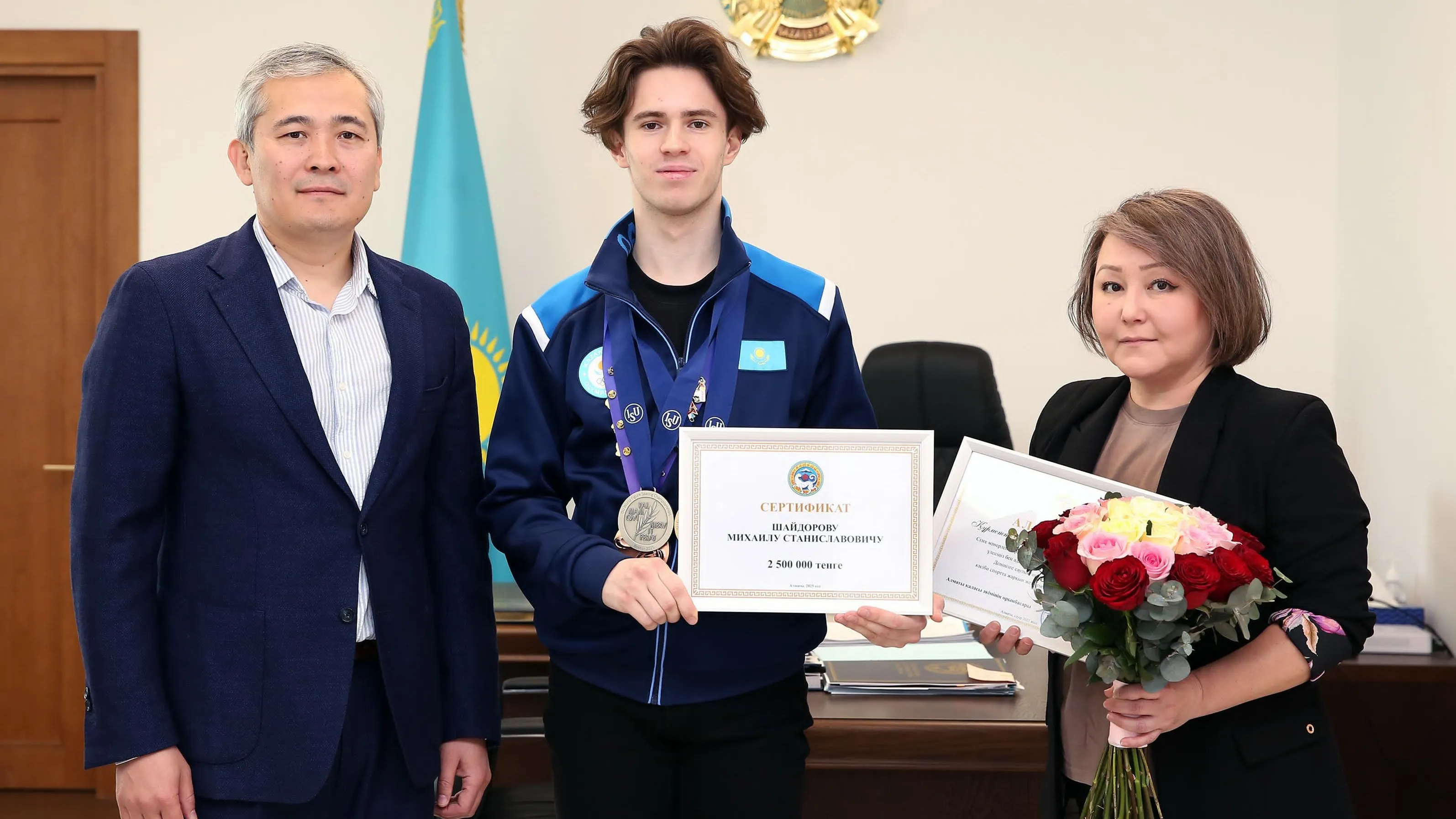 Фигуристу Михаилу Шайдорову подарили двухкомнатную квартиру в Алматы и сертификат на 2,5 млн тенге