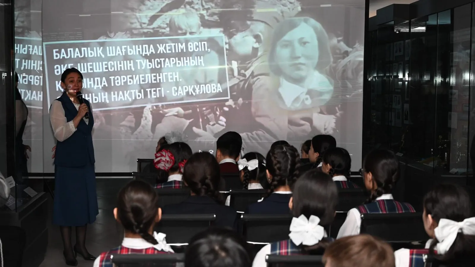 Восьмой и пятый классы стали участниками мероприятия "Әлия – қаһармандық дастаны", проходящего под знаком юбилея национальной героини. Роль экскурсовода взяла на себя победитель областного профессионального конкурса Асемгуль Амангельды, и, помимо традиционной информации, ей пришлось отвечать на вопросы школьников, явно имеющих большой интерес к жизни и подвигу девушки-снайпера.