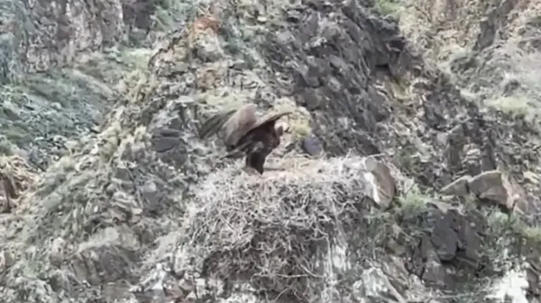"Весной 2025 года в ходе полевых наблюдений на территории Чарынского государственного национального природного парка было обнаружено гнездо с птенцом редкой хищной птицы – орла ягнятника, занесенного в Красную книгу Республики Казахстан... Орел ягнятник находится под государственной охраной, и все действия по его защите строго регламентированы законодательством".