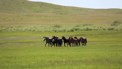 - Невероятные кадры! Какие пейзажи, табун лошадей на прекрасном поле на фоне могущественных гор.