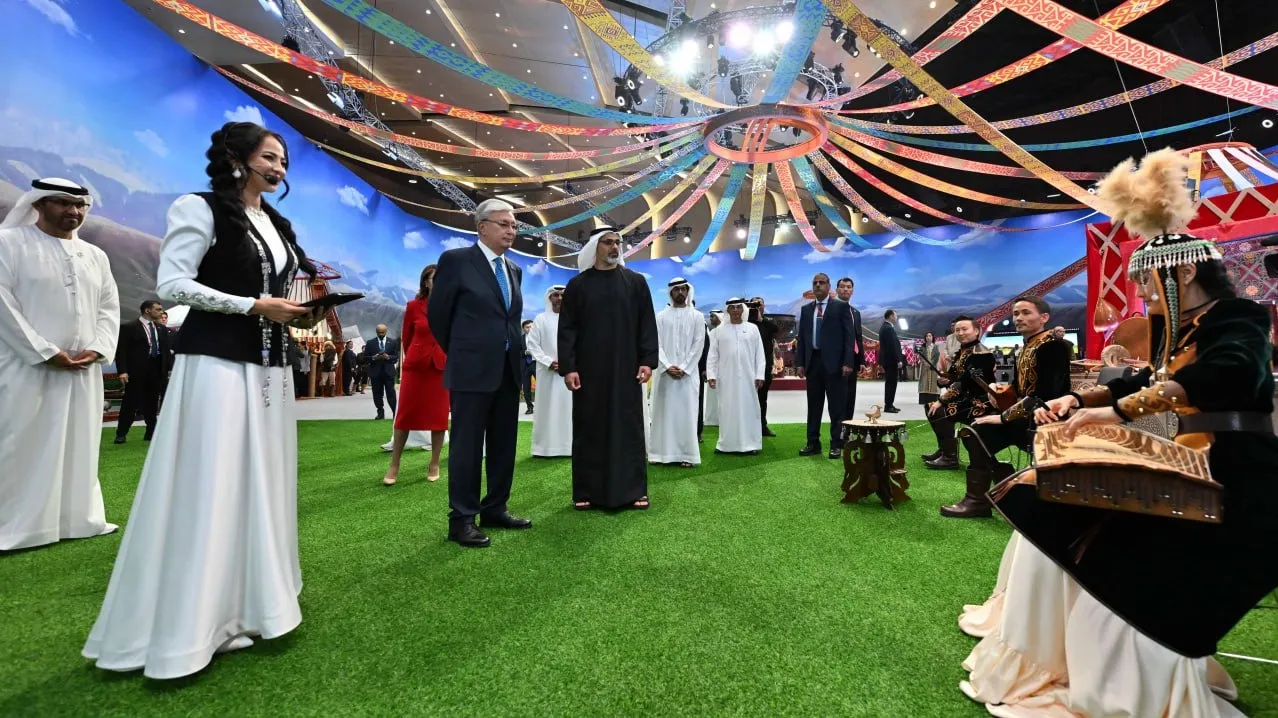 Президент Казахстана Касым-Жомарт Токаев и шейх Халед бен Мухаммед бен Заид Аль Нахаян осмотрели выставку "Этноаул", посвященную многовековому культурному наследию казахского народа, сообщает Zakon.kz.