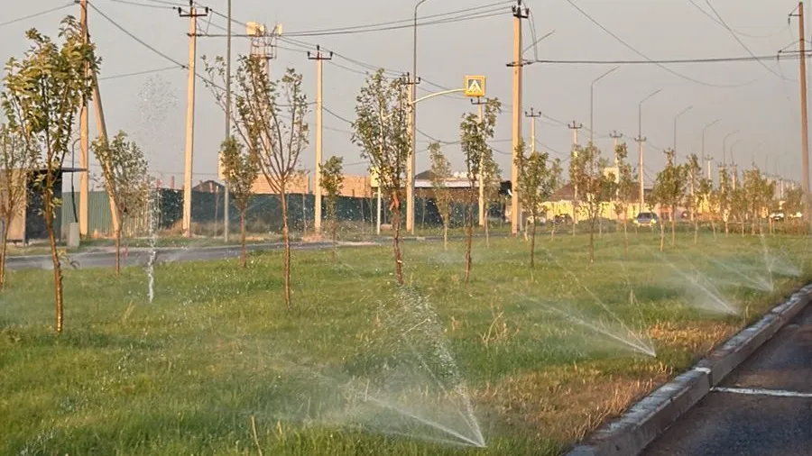 В 2024 году работы по озеленению Абайского района выполнял подрядчик – ТОО "AIKHAB PARTNERS". В рамках работ была установлена автоматизированная система полива протяженностью 7,5 километра.