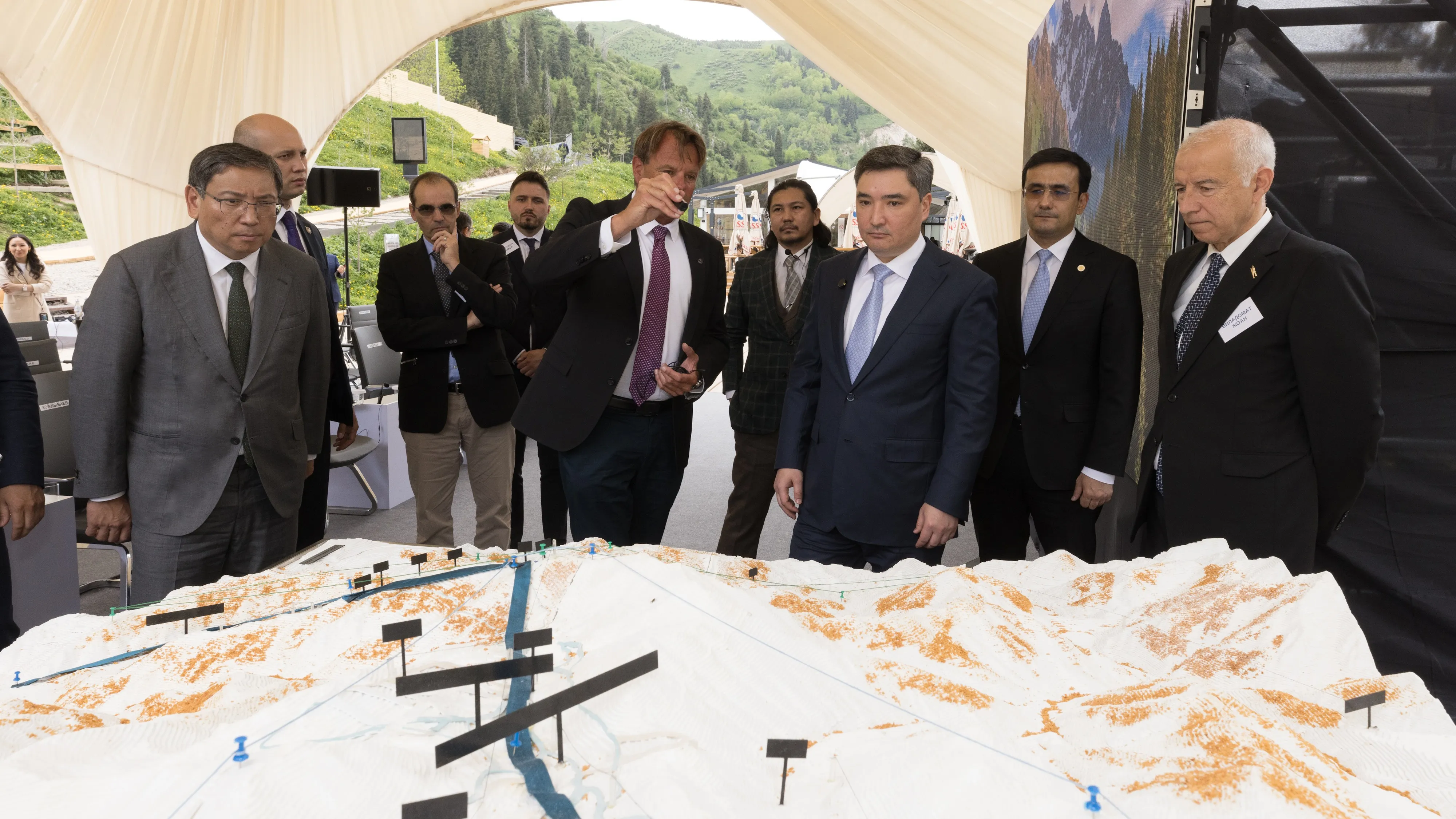 Известно, что с презентацией о планах по развитию горного туризма выступили аким Алматы Ерболат Досаев, председатель правления АО НУХ "Байтерек" Рустам Карагойшин, представители мировых компаний-лидеров горнолыжной индустрии: партнер Horwath HTL (США) Синиша Топалович, генеральный директор Stem International (Франция) Винсент Тассар, президент PGI management (Андорра) Жоан Виладомат.