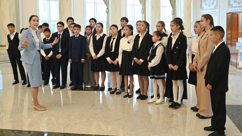 Во время экскурсии школьники осмотрели центральный парадный холл Акорды и залы, предназначенные для проведения официальных мероприятий, а также библиотеку главы государства и сад на территории резиденции.