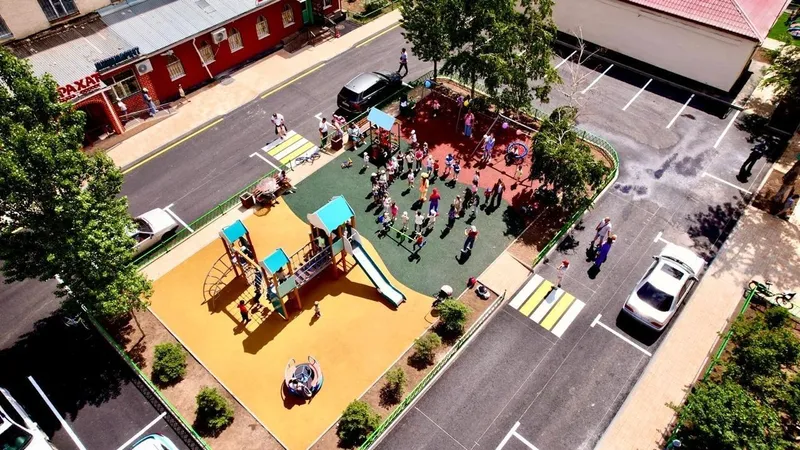 Район Сарыарка порадовал жителей открытием 16 обновленных дворов. Капитальный ремонт охватил детские площадки, спортивные зоны, футбольные поля. Уложено резиновое покрытие, установлены новые игровые элементы.