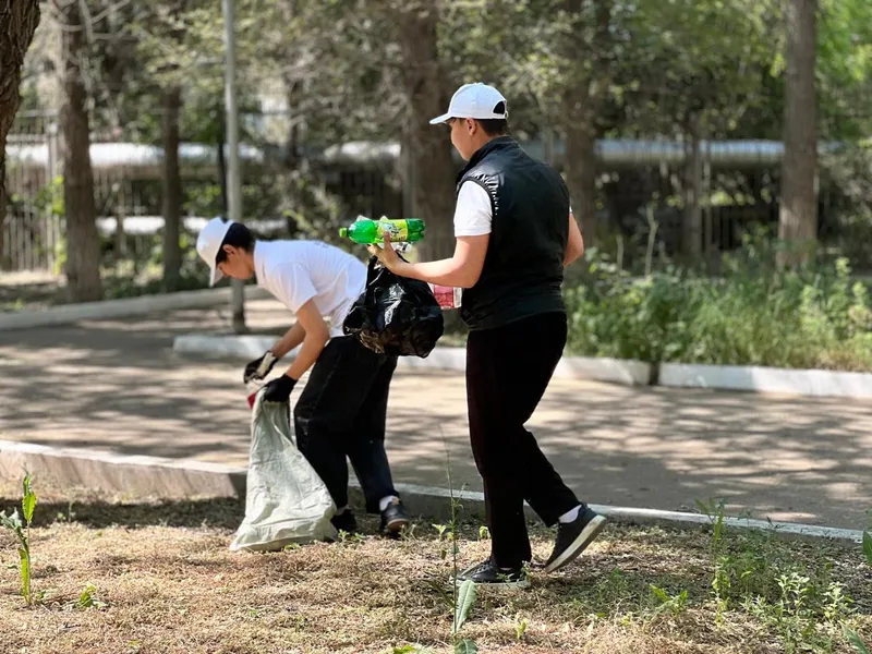 Сегодня около 60 человек, включая членов молодежного крыла "Жастар рухы", организовали акцию "Чистый четверг" в рамках кампании "Чистый Казахстан". Они убрали мусор, подмели территорию парка и собрали сухие ветки.