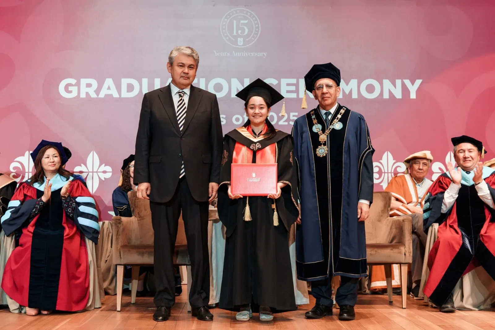 Не менее яркой страницей церемонии стали истории других выпускников, покоривших вершины университетской системы. Мирас Есмұратұлы, археолог из Абайской области, окончив бакалавриат NU, продолжит учиться по PhD-программе Нью-Йоркского университета: