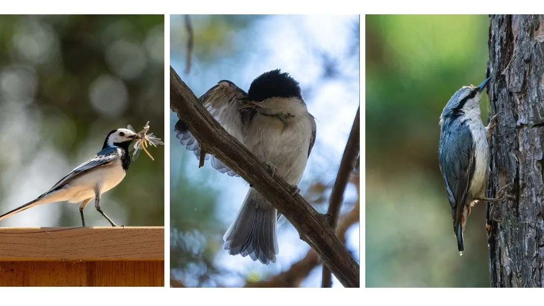 - Поползень – одна из немногих птиц, способных бегать по дереву вниз головой. Маленький, с "маской" на глазах, он запасает семена на зиму и ловко выискивает насекомых в коре.