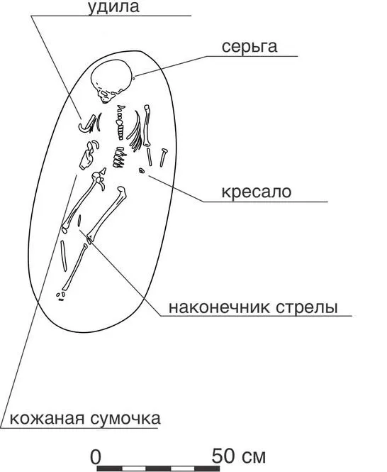 Именно в нем ученые обнаружили скелет усопшего, наконечники стрел, элементы конской сбруи и кожаную сумку.