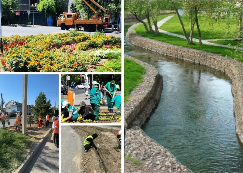 - Тұран: 62 300 кв. м зеленых насаждений, работы завершены на 70%.