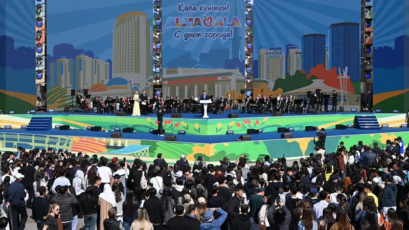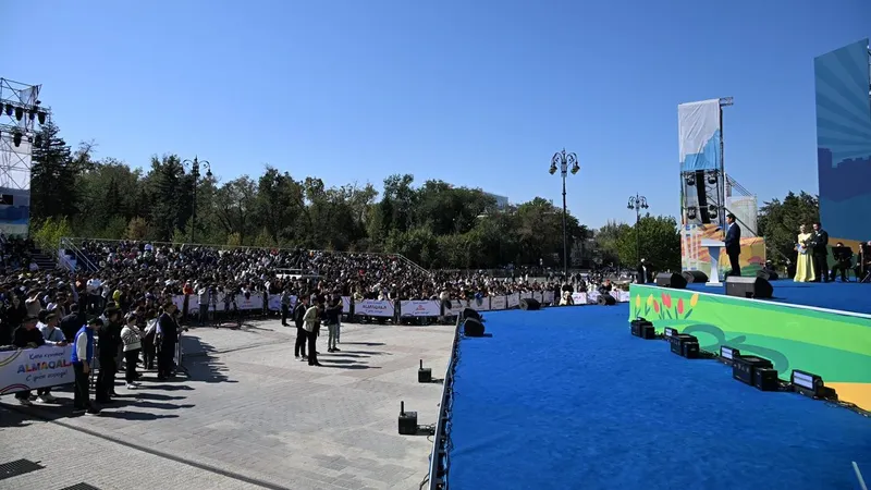 Торжества начались с концерта на площади Астана, где аким города Дархан Сатыбалды обратился к алматинцам и гостям мегаполиса с поздравлением.