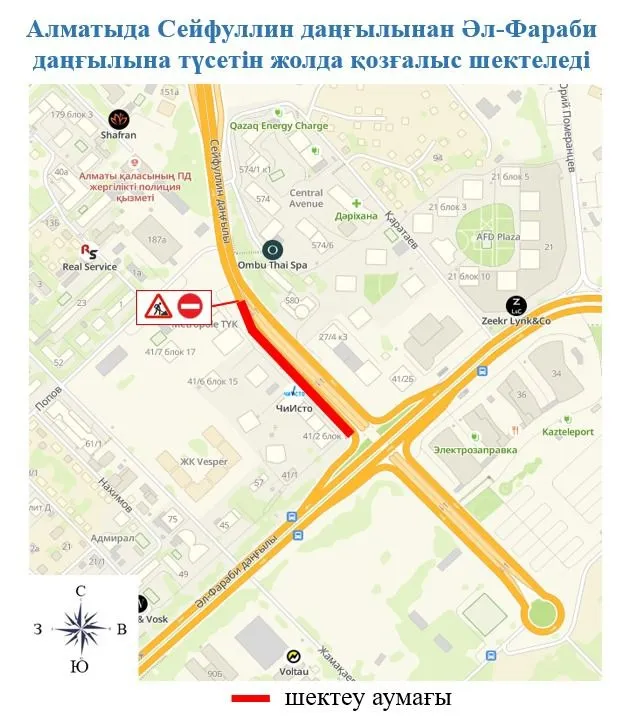 ТОО "Алматинские тепловые сети" сообщило, что движение в южном и северном направлениях по Сейфуллина сохранится без изменений.