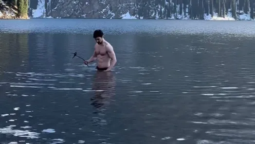 "Обнаружил и устранил [точеную пику] железный прут на дне горного озера в Казахстане", – указано в подписи на видео.