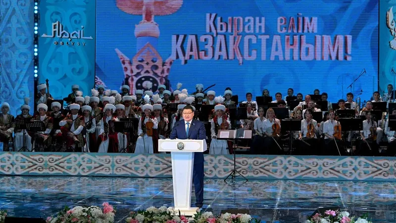Торжественное собрание завершилось праздничным концертом. Для зрителей выступили заслуженный деятель Казахстана Досымжан Танатаров, Зарина Омарова, Молдир Ауелбекова, солист квартета "Жігіттер" Мырзахан Маканов, артисты областной филармонии, студенческий хор музыкального училища им. М.Тулебаева и эстрадно-симфонический оркестр акима области Абай.