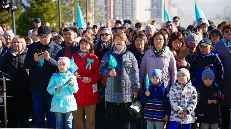 В мероприятии приняли участие жители города, ветераны, военнослужащие, представители молодежи и государственной службы и аким области Нурымбет Сактаганов. Под звуки гимна Казахстана небесно-голубое полотнище взмыло к небу, став символом свободы, единства и независимости страны.