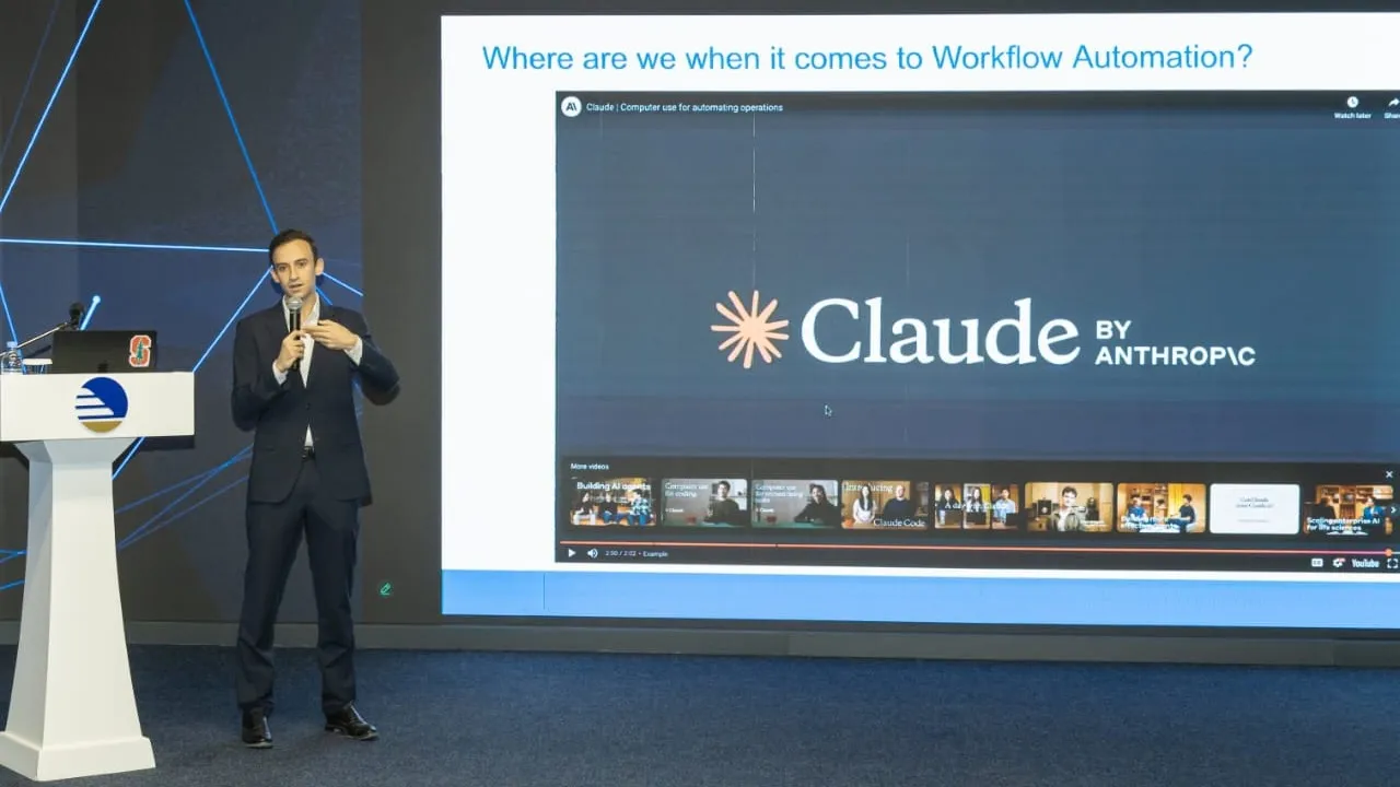 Лектором выступил доктор наук Стэнфордского университета Юнес Бенсуда Мурри – один из ведущих экспертов в области образовательных технологий и искусственного интеллекта, руководитель компании LiveTech.AI и автор более 20 международных исследований по применению нейросетей в инженерных и транспортных системах.