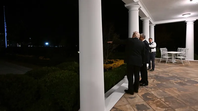 С крыльца Белого дома лидеры двух стран осмотрели строительство нового бального зала.