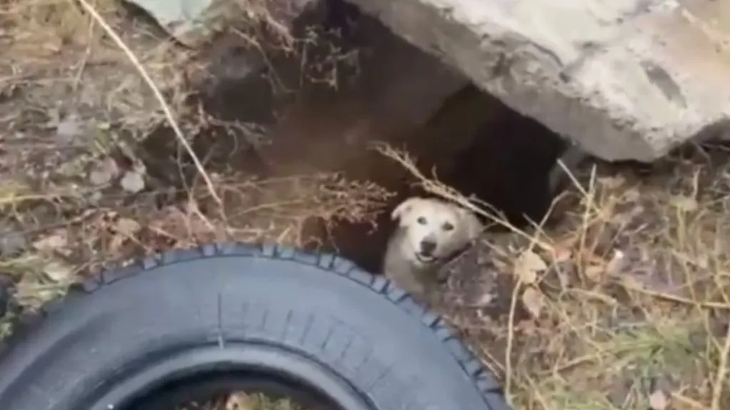 Добрые новости: спасатели помогли собаке выбраться из глубокой ямы