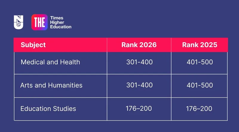 NU поднялся на 100 позиций в предметных рейтингах Times Higher Education-2026