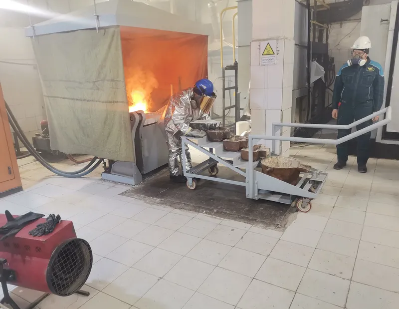 В специальном цехе золотосодержащую руду перерабатывают и в итоге отливают слитки. Для растворения драгоценного металла используется цианид натрия. К слову, ГОК "Пустынное" стал первым предприятием в Казахстане, прошедшим международную сертификацию ICMI по управлению цианидами, рассказывают в компании.