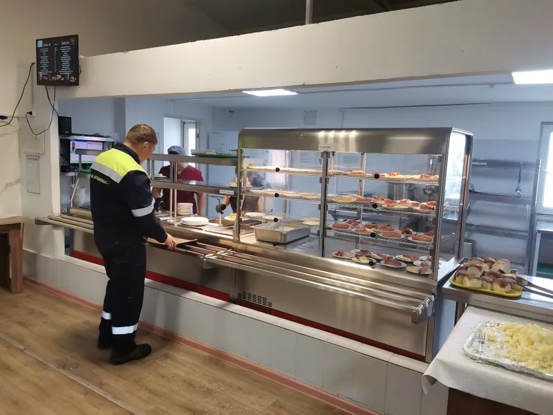 Бодрое утро в горно-обогатительном комплексе "Пустынное" начинается в семь часов. К восьми работники в спецодежде приходят на завтрак в столовую. Здесь все, как положено в порядочном общепите: творог, каши, омлет или яичница с сосисками и сыром. Из напитков – кофе, чай и два вида компота. Рацион позволяет запастись силами и зарядиться хорошим настроением, говорят сотрудники ГОКа.