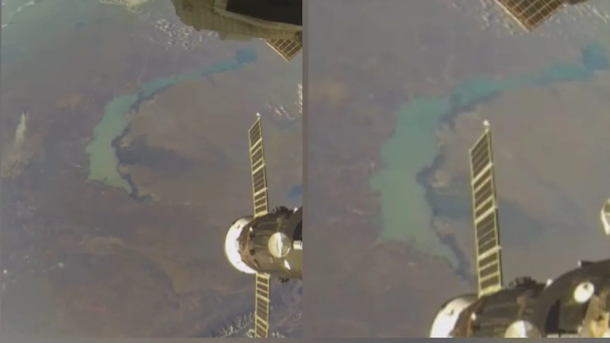 Казахстанское озеро Балхаш сняли с борта Международной космической станции, сообщает Zakon.kz.