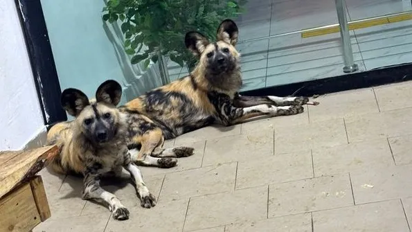 Теперь здесь живут две самки и один самец полосатой гиены, а также пара гиеновидных собак – самец и самка.