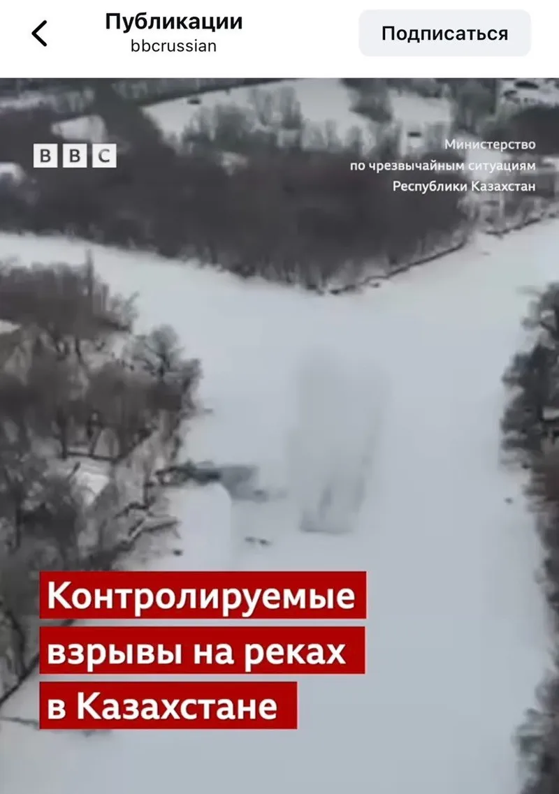 Речь идет об официальном аккаунте службы в Instagram, где 9 марта размещено видео подрыва льда в одном из регионов Казахстана.