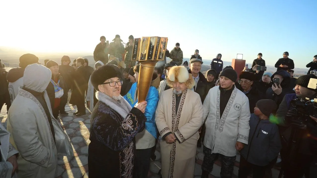 По традиции на вершине Отпан тау был зажжен "Огонь единства", а в этом году символическая эстафета передана от потомков Тазике ата потомкам Кунанорыс.