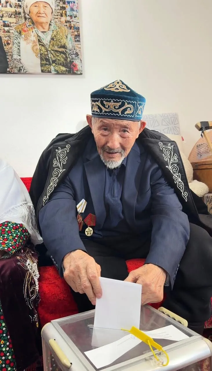 Кали Искакову исполнилось 95 лет, его супруге Бубен апа – 92 года. Учитывая возраст, голосование для них было организовано на дому. К супругам прибыла выездная группа участковой комиссии с переносной урной. Члены комиссии проверили документы, выдали бюллетени и обеспечили все необходимые условия для тайного голосования.